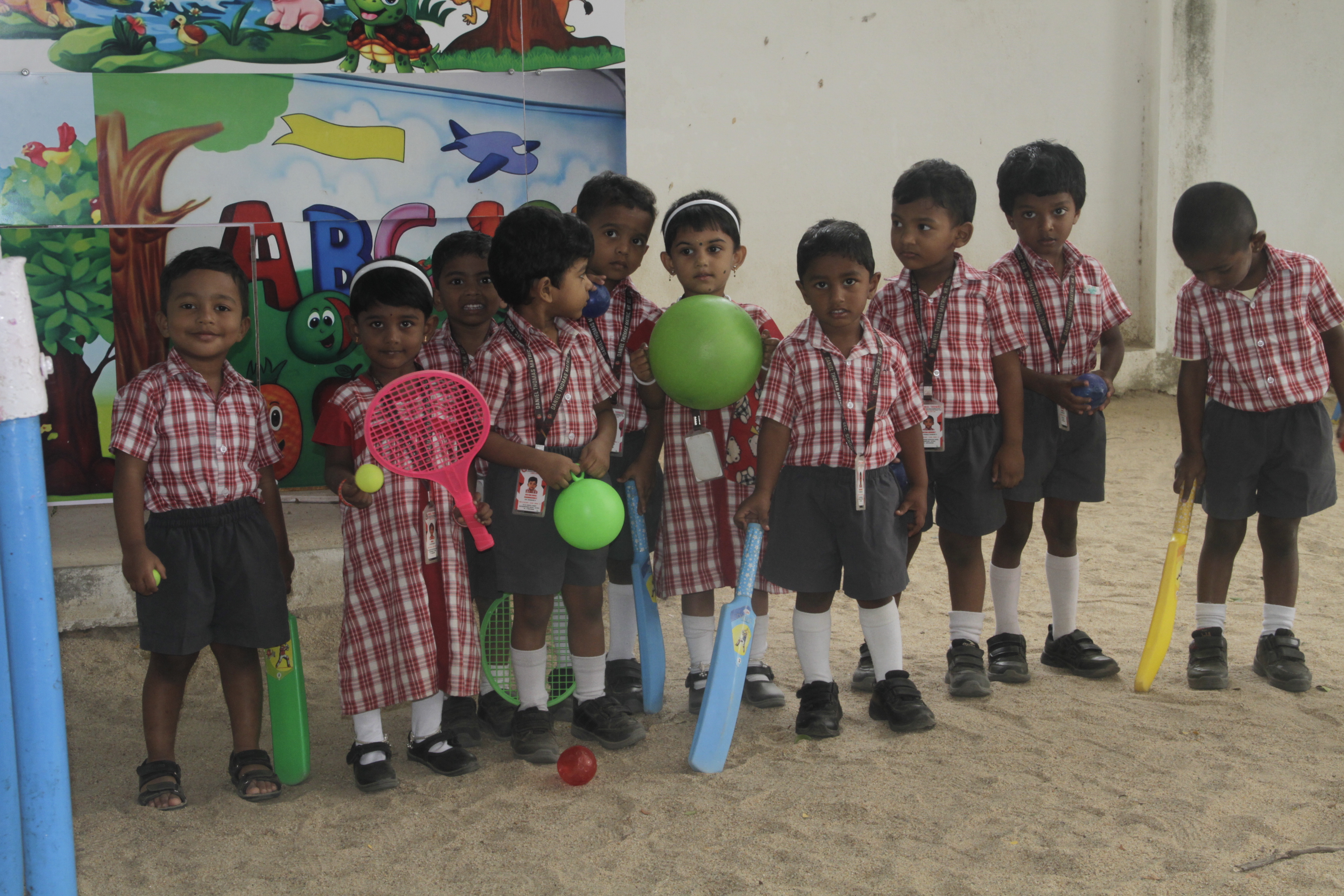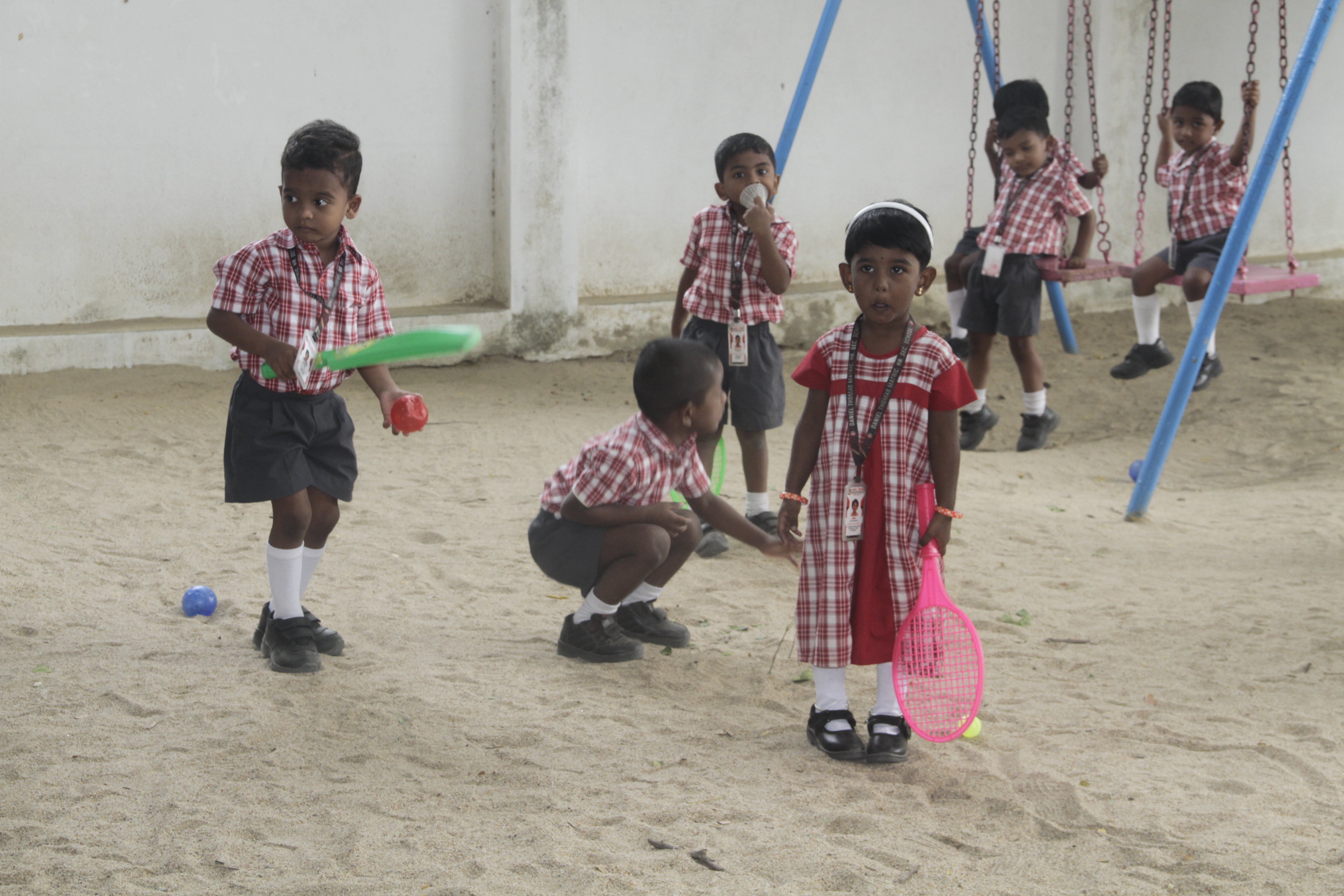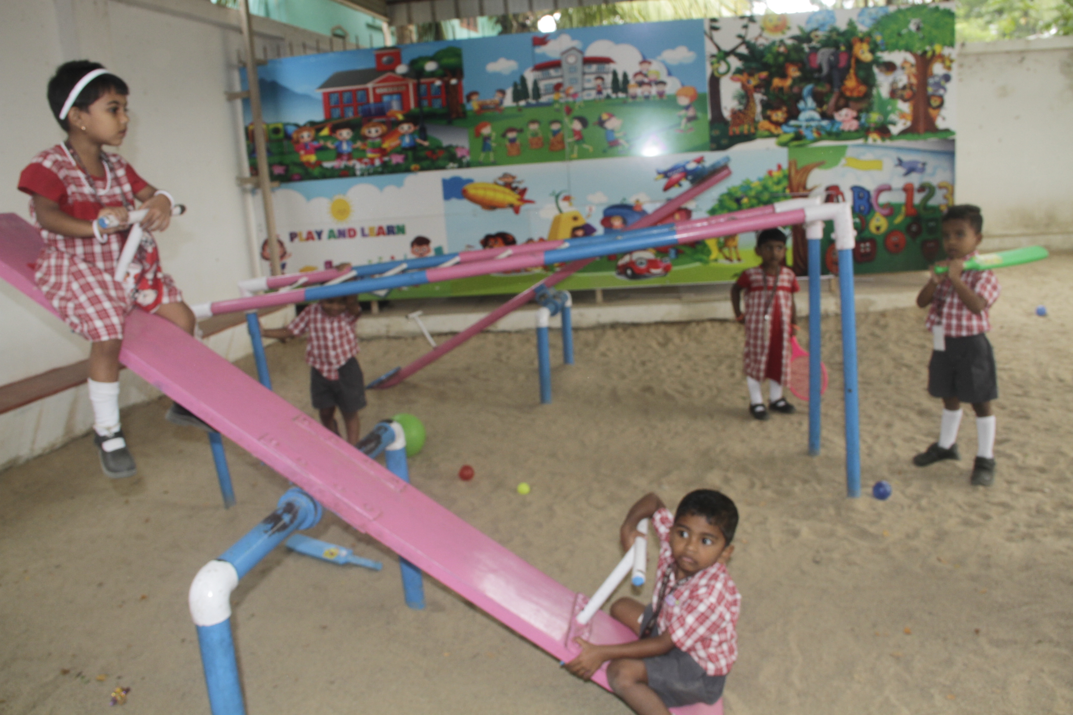A well-maintained KG play area with age-appropriate equipment that encourages active play, coordination and joyful learning.