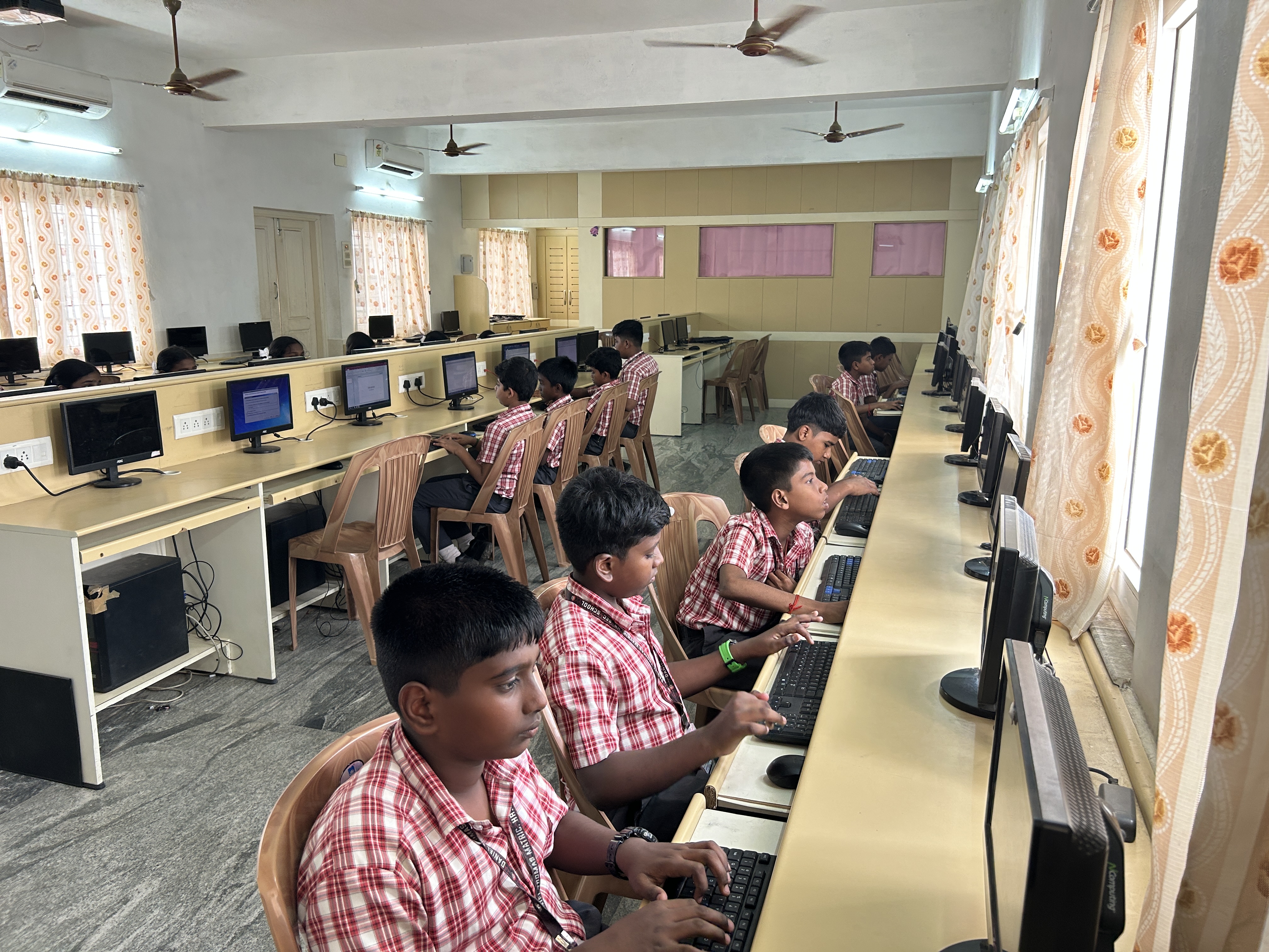 Computer-equipped laboratory with high-speed internet connectivity for IT education and digital literacy programs.